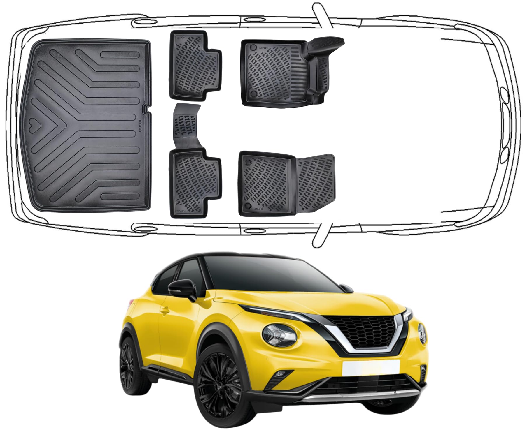 3D Fußmatten & Untere Kofferraumwanne Auto Set Kompatibel mit Nissan Juke 2.Gen 2019 - 2026