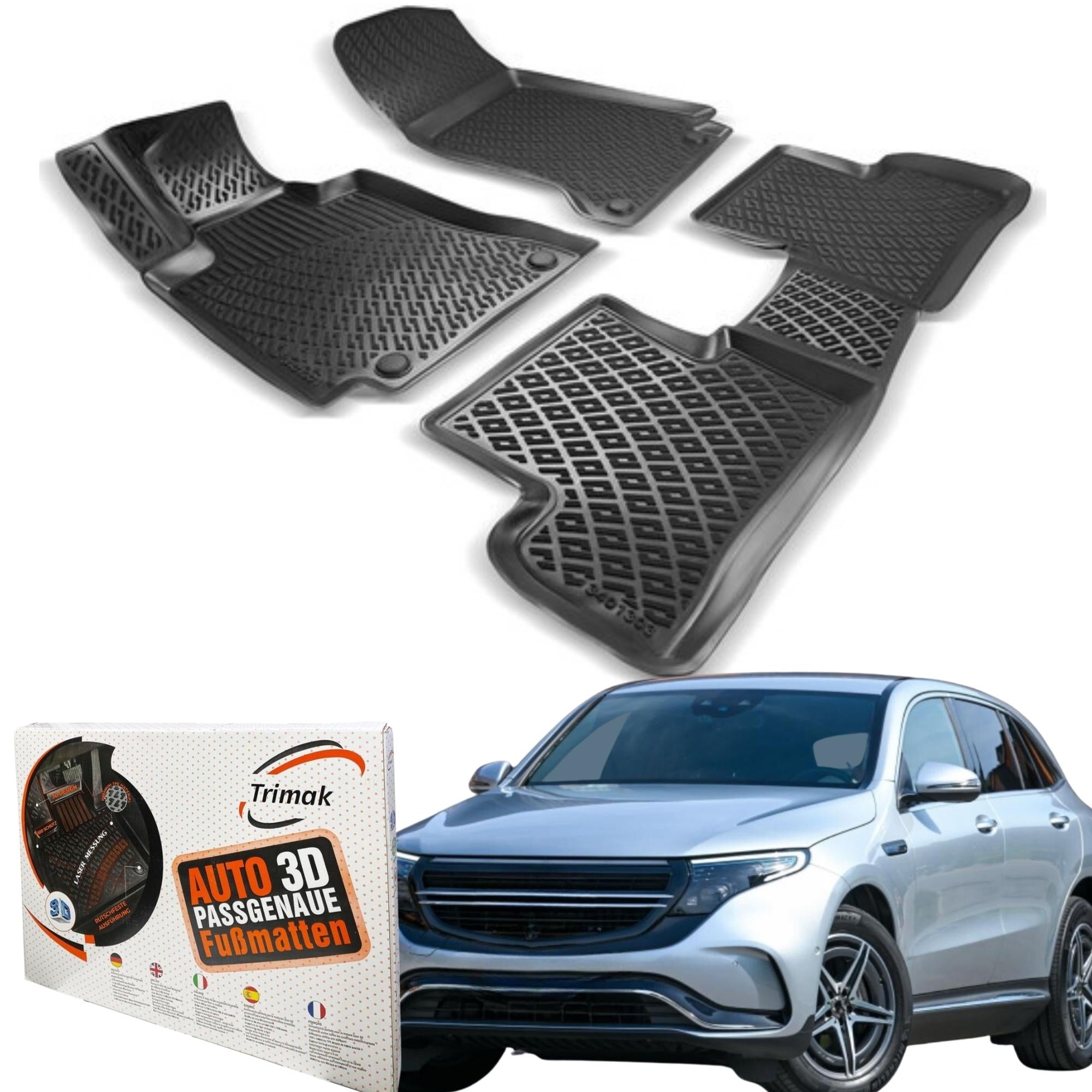 Maximaler Schutz trifft auf perfekte Passform: Die passgenauen Trimak Gummimatten wurden mithilfe modernster 3D-Laserscantechnologie speziell für den Mercedes-Benz EQC (N 293) Auto Gummimatten Automatten entwickelt.