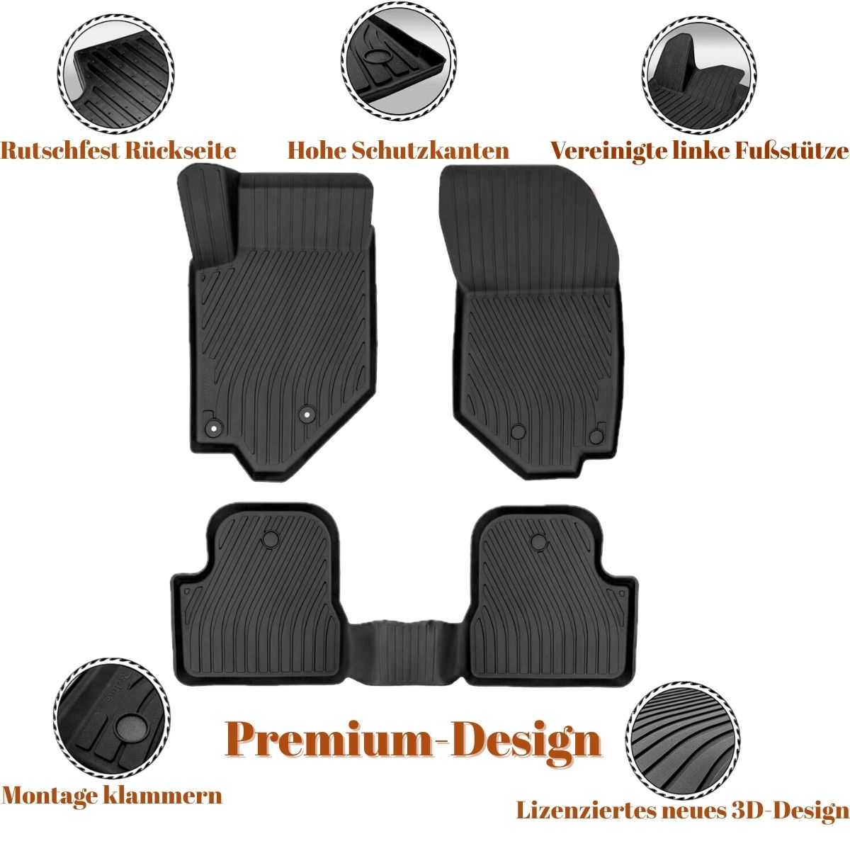 Unsere hochwertigen Fußmatten sind speziell für den europäischen Markt entwickelt und online erhältlich – perfekt abgestimmt auf Ihr Fahrzeugmodell. Bei der Produktion verwenden wir ausschließlich hochwertige Materialien, die geruchsfrei, langlebig und umweltfreundlich sind. Zudem sorgen die erhöhten Ränder dafür, dass der Fahrzeugteppich stets sauber und geschützt bleibt.