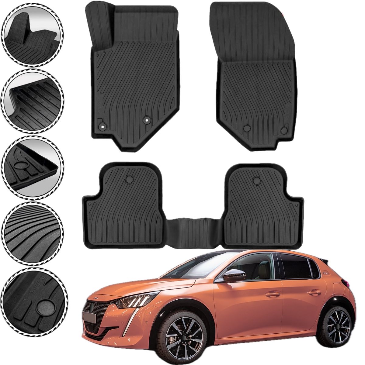 Maximaler Schutz trifft auf perfekte Passform: Die passgenauen Rizline Gummimatten wurden mithilfe modernster 3D-Laserscantechnologie speziell für den Premium Peugeot 208 II 2019 - 2025 Gummimatten entwickelt.