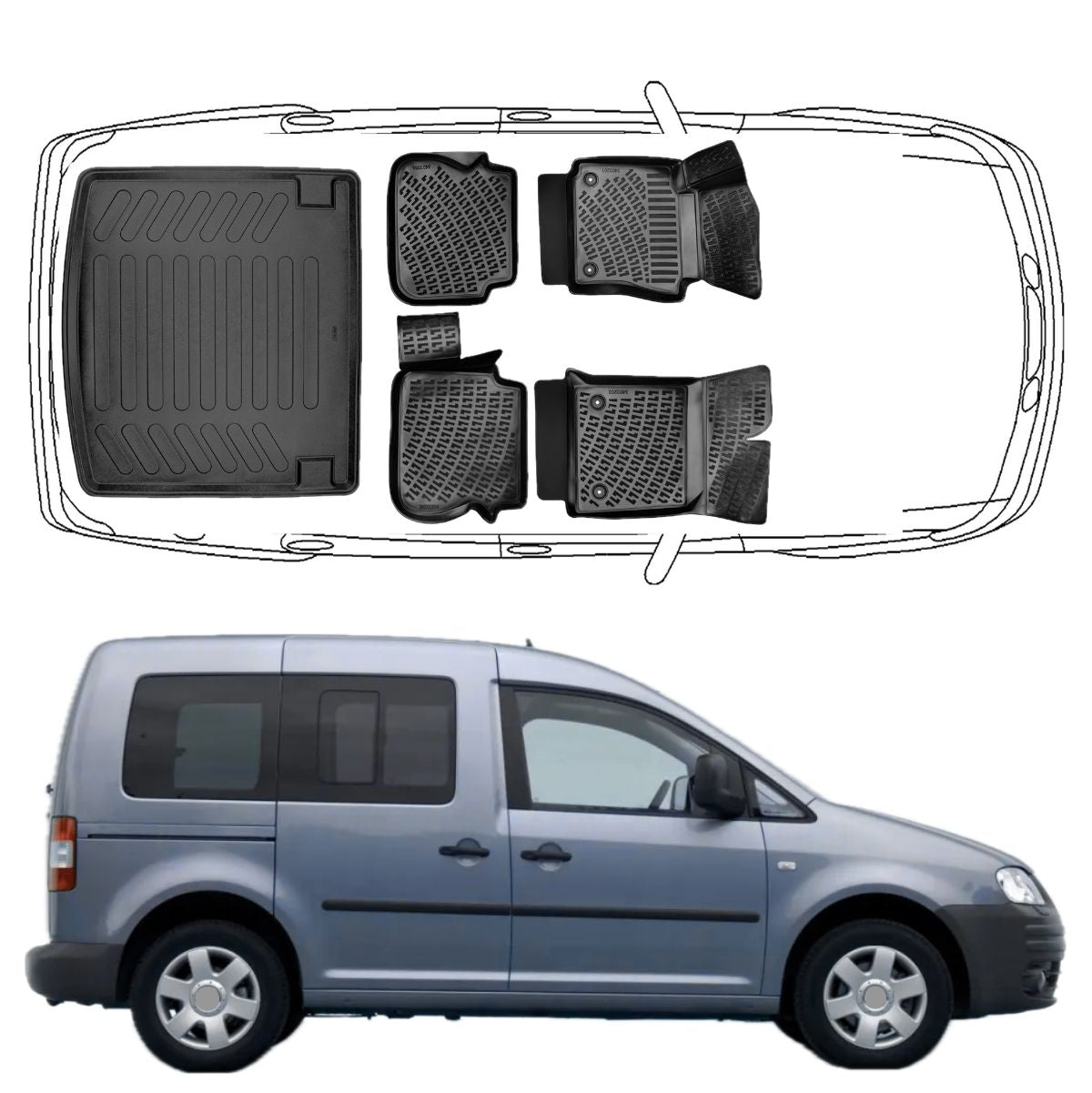 Set und Kofferraummatte VW Caddy 2K 2003-2010 Auto AllWetterGummimatten und Kofferraumwanne