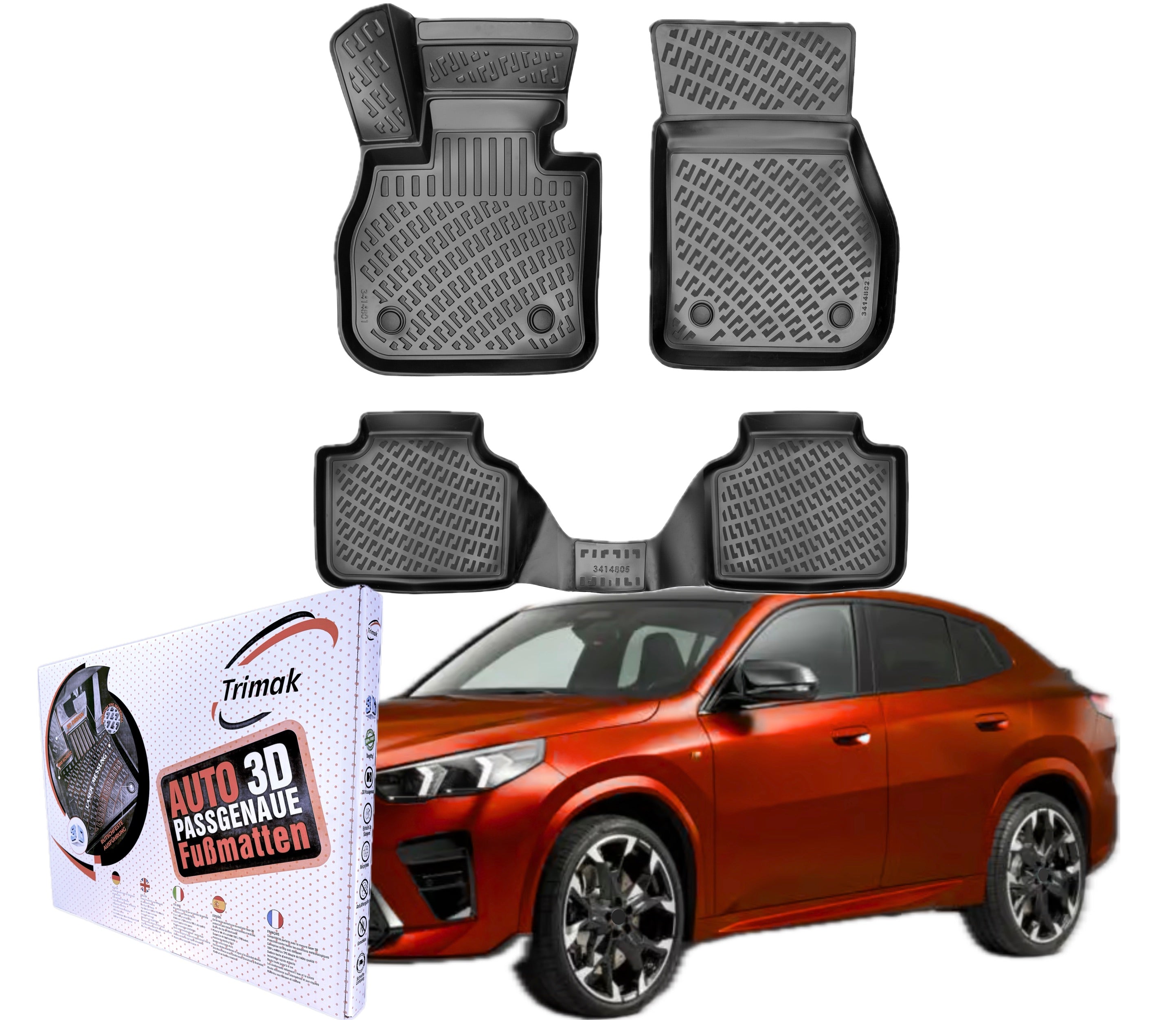 Maximaler Schutz trifft auf perfekte Passform: Die passgenauen Trimak Gummimatten wurden mithilfe modernster 3D-Laserscantechnologie speziell für den Trimak BMW X2 U10 2024 --Auto AllWetterGummimatten entwickelt.
