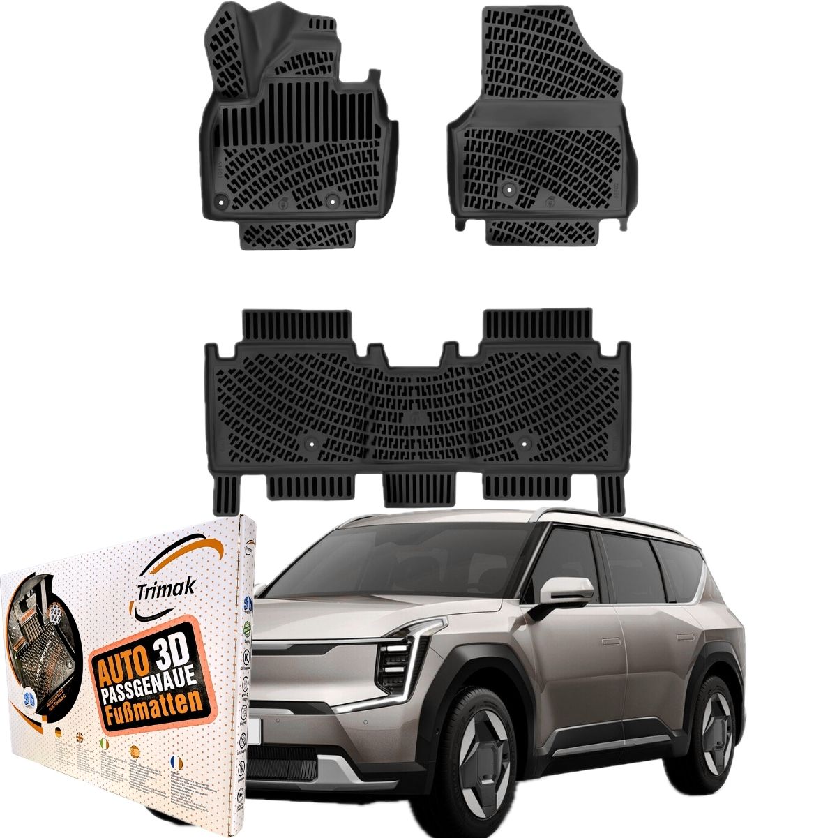 Maximaler Schutz trifft auf perfekte Passform: Die passgenauen Trimak Gummimatten wurden mithilfe modernster 3D-Laserscantechnologie speziell für den Trimak Kia EV9 6 Sitzer ab 2024 Auto AllWetter Gummimatten entwickelt.