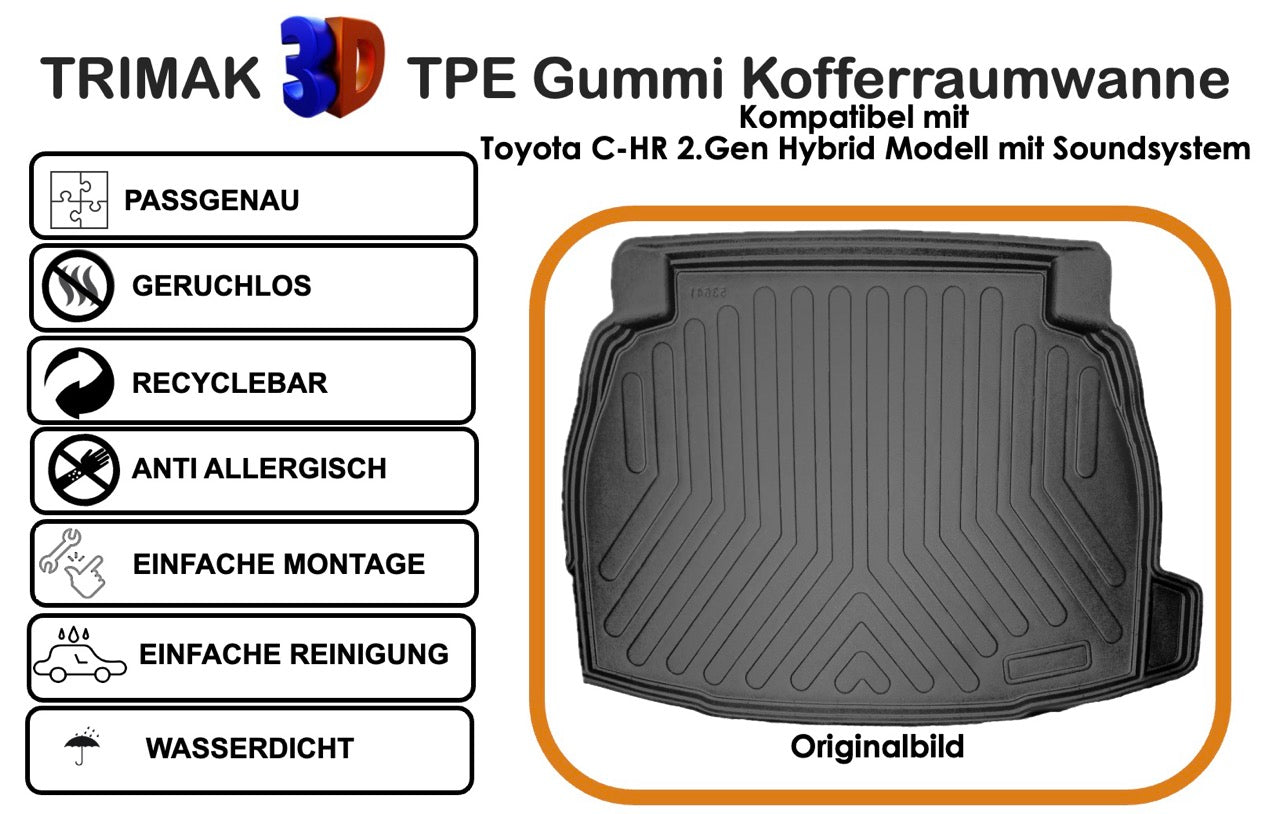 Trimak Kofferraumwanne Toyota C-HR 2.Gen 1.8 Hybrid Modell mit Soundsystem