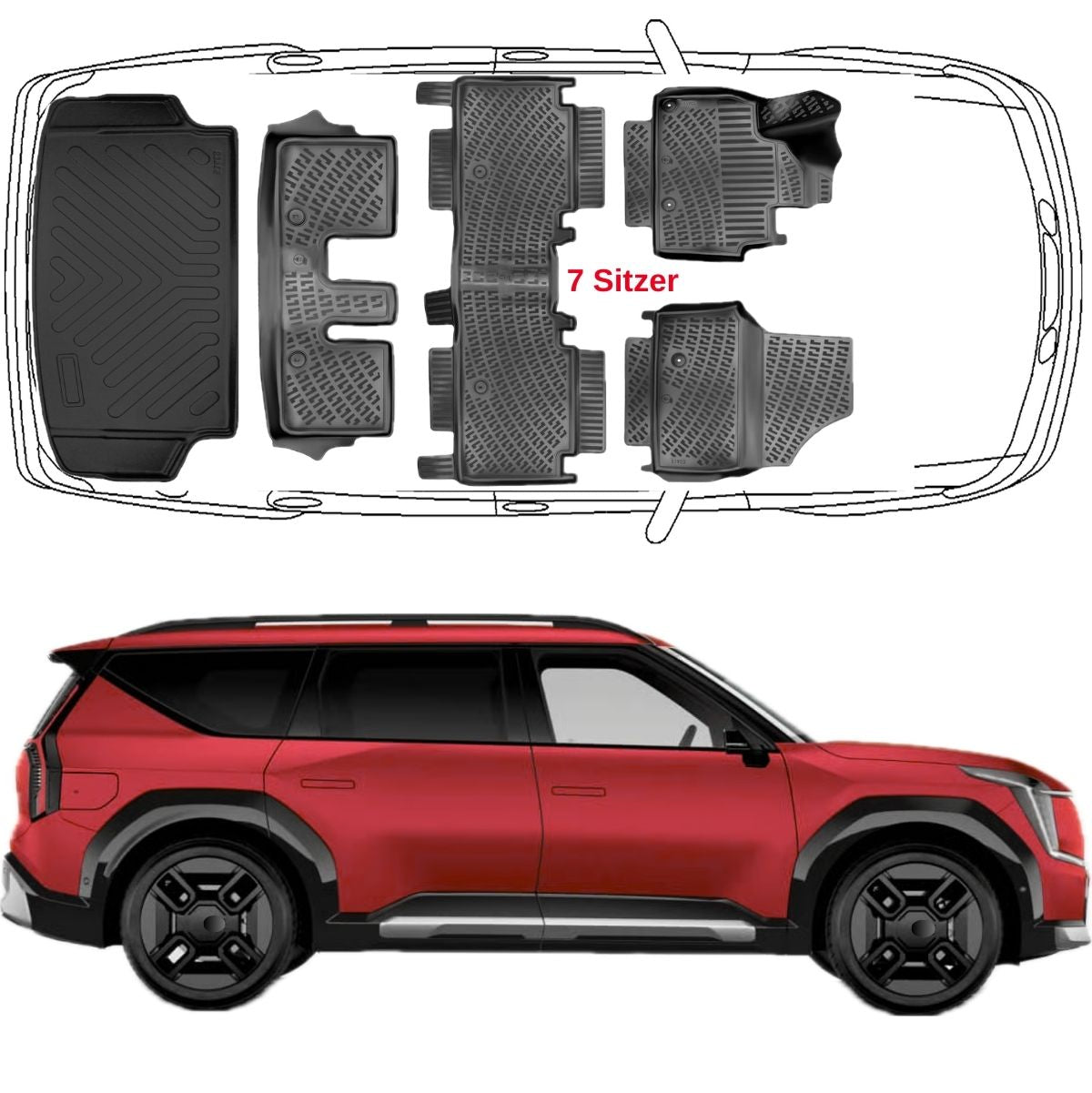 Kompatibel mit: Set Kompatibel mit KIA EV9 7 Sitzer ab 2024 3D Auto Fußmatten & Kofferraumwanne Set
