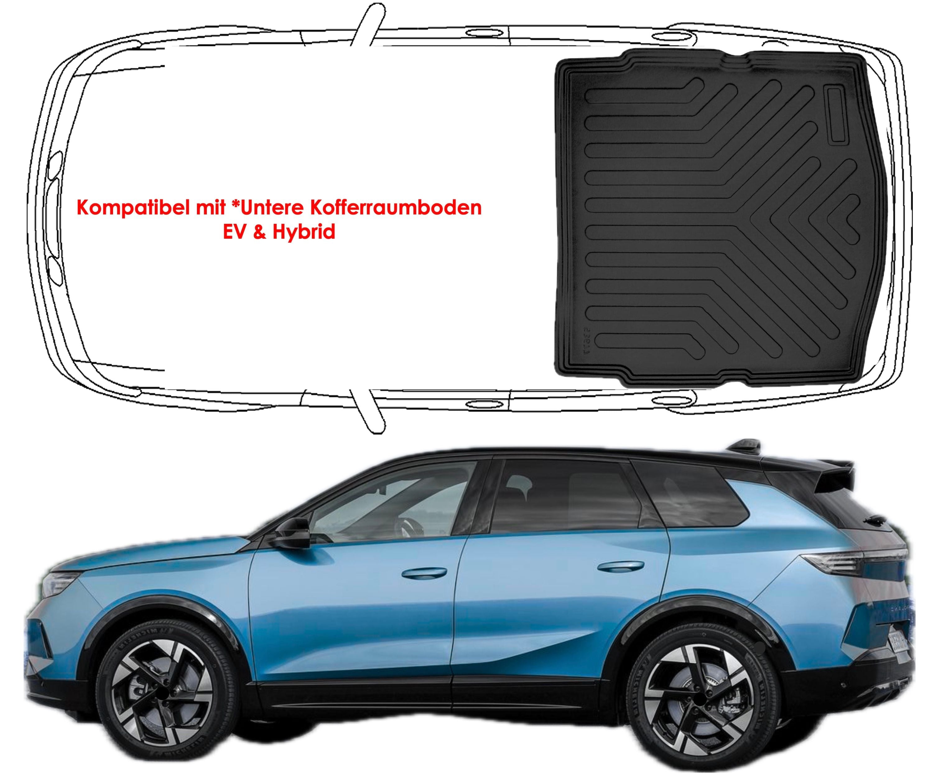 Maximaler Schutz trifft auf perfekte Passform: Die passgenauen Trimak Gummimatten wurden mithilfe modernster 3D-Laserscantechnologie speziell für den Trimak Opel Grandland 2.Gen ab 2024 EV & Hybrid Kofferraumwanne entwickelt.